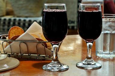 Keywords: red wine wine glasses white food crackers water table delicious berry tasty snack