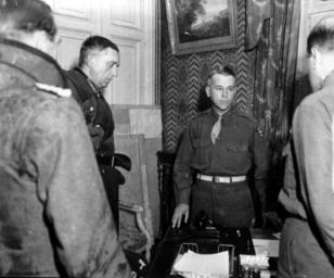 | Keywords: Reddition allemande de Cherbourg, le 26 juin 1944..jpg Reddition allemande de Cherbourg le 26 juin 1944 Une plaque commémorative http //www flickr com/photos/mlq/7073562149/in/photostream www flickr com/photos/mlq/7073562149/in/photostream Le Major-General américain Joseph Lawton Collins chef du VII US Corps au château de Servigny à Yvetot Bocage reçoit la signature de la capitulation de l'état-major allemand représenté par le Generalleutnant Karl Wilhelm von Schlieben à gauche commandant de la Festung Cherbourg et le Konteradmiral Walter Hennecke de dos à gauche A droite l'interprète Voir ici un reportage cinématographique de piètre qualité de 1 62 à 2 25 http //www britishpathe com/record php id 61247 www britishpathe com/record php id 61247 Au début de ce film également l'arrivée et le départ au château de Servigny http //www britishpathe com/record php id 60978 www britishpathe com/record php id 60978 Grâce à Simon Trew qui a eu l'occasion de lire le journal intime du Major Chester B Hansen l'aide de camp de Bradley Hansen fut son nègre pour le livre A soldier's story d'Omar Nelson Bradley Holt 1951 Ce journal ensemble de notes mal classées et non exploitées n'a pas été publié Nous pouvons apporter les précisions suivantes pour le 27 Juin il indique que Bradley a refusé de rencontrer von Schlieben le traitant de bâtard et souhaitant de le mettre dans un camp de prisonniers à Isigny puis de l'envoyer en Angleterre par mer agitée von Schlieben qui mesurait plus de 1 90 m et pesait plus de 90 Kg était très arrogant et se plaignait de la nourriture ration K de la propreté des WC l'eau était coupée à Cherbourg exigeait la présence de ses aides de camp ; suite à un accident de voiture la tenue du général ayant était abimée et dépouillée de ses insignes par un GI d'où sa colère quand il la récupéra Les Lt Col Max Specht et Robert Low du FUSA G-2 section interrogèrent un jeune aide de camp arrogant qui ne savait pas grand-chose Les Américains craignaient la présence de bombes à retardement dans Cherbourg Reportage de 5 photos p000868 p000869 p00870 p000871 et p013304 http //www flickr com/search/ w 58897785 40N00 q p000868+or+p000869+or+p00870+or+p000871+or+p013304 m text www flickr com/search/ w 58897785 40N00 q p000868+or+ Lire ici le tract de la reddition lâché sur les forts de la rade de Cherbourg le 27 juin http //www flickr com/photos/mlq/4082709376/ www flickr com/photos/mlq/4082709376/ Voir ici un reportage cinématographique de piètre qualité de 1 62 à 2 25 http //www britishpathe com/record php id 61247 www britishpathe com/record php id 61247 Au début de ce film également l'arrivée et le départ au château de Servigny http //www britishpathe com/record php id 60978 www britishpathe com/record php id 60978 et http //www criticalpast com/video/65675060429_General-Joseph-Lawton-Collins_Captured-German-Generals_interrogated www criticalpast com/video/65675060429_General-Joseph-Law German surrender at Cherbourg U S Major-General Joseph Lawton Collins Head of VII U S Corps at Castle Servigny receives the signing of the instrument of surrender of the German General Staff represented by Generalleutnant Karl Wilhelm von Schlieben at the left of the image Commander of the Festung Cherbourg and Konteradmiral Walter Hennecke left with back turned http //www flickr com/photos/photosnormandie/7073997267/ p013304 Uploaded by oaktree_b 2005-02-17 10 55 http //www flickr com/people/58897785 N00 Patrick Peccatte Michel Le Querrec from near Paris France PD-USGov File Upload Bot Magnus Manske 2012-10-17 Battle of Normandy Battle of Cherbourg History of Manche |