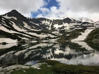 Keywords: reflection lake mountain nature landscape scenic bulgaria cloud