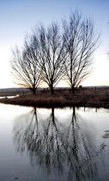 Keywords: reflection pond lake silhouette nature landscape autumn trees spain water reflection the field countryside