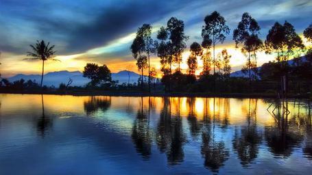 Keywords: reflection sunset beautiful landscape trees silhouette