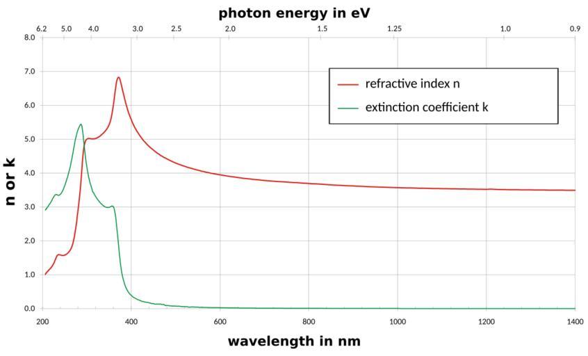 | Keywords: Refractive index of silicon (300 K).svg en Wavelength dependet complex refractive index N n + ik of crystaline silicon in the NIR VIS an UV region at 300 K Data based on Palik Edward D ; Ghosh Gorachand Handbook of optical constants of solids San Diego Academic Press 1998 “ ISBN 0125444206 de Darstellung der wellenlängenabhängigen komplexen Brechzahl N n + ik von Silizium im NIR-VIS-UV-Bereich bei 300 K Daten basieren auf den Angaben in Palik Edward D ; Ghosh Gorachand Handbook of optical constants of solids San Diego Academic Press 1998 “ ISBN 0125444206 own Cepheiden 2007-06-19 file Komplexe_Brechzahl_von_Silicium_ 300_K svg Silicon spectra Refractive index plots |