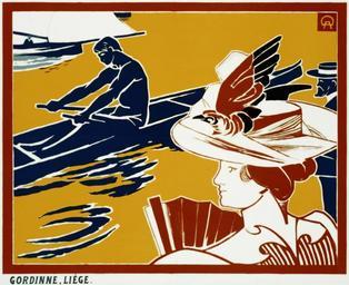 | Keywords: Regate et chapeau à plumes, advertising poster, 1895.jpg Advertisement for Meuse River rowing regatta Entitled Regate et chapeau à plumes Regatta and plumed hat Man rowing girl watching wearing plumed hat LOC-image cph 3b52447 Restoration by trialsanderrors http //www flickr com/photos/trialsanderrors/3021191031/ Regate et chapeau à plumes advertising poster ca 1895 1895 Creator Auguste Donnay PD-old Liège in art Meuse River in Liège Regatta rowing Advertising posters of Belgium 1890s posters 1898 advertisements Hats in art Female headgear in art Auguste Donnay Fashion in 1898 |