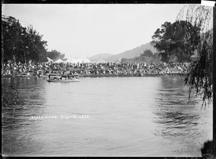 MAKE A MEME View Large Image Regatta on the Waikato River at Ngaruawahia, circa 1910. Across the river marquees are visible, with crowds of people lining the river bank. There are several motor boats beside the bank, and one laden with passengers. Photograph taken by ...