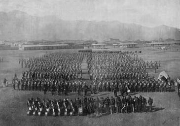 Keywords: Regimiento Santiago N 5 de Linea del Ejercito de Chile en Antofagasta (1879).jpg Regimiento Santiago N° 5 de Línea del Ejército de Chile en el campamento de Antofagasta durante la Guerra del Pacífico Álbum gráfico militar de Chile campaña del Pacífico 1879-1884 Santiago de Chile Universo 1909 1879 probably es Eduardo Clifford Spencer and es Carlos Díaz Escudero PD PD-Art PD-Chile Regimiento 5° de Línea Santiago GdP Antofagasta Black and white photographs of war Black and white photographs of groups Black and white photographs Álbum gráfico militar de Chile Campaña del Pacífico