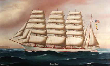 | Keywords: Reginald Arthur Borstel - The square rigger 'John Ena' in Australian waters.jpg oil canvas in 20 30 25 accession number object history PROVENANCE James Rolf San Francisco California; Private collection San Francisco California credit line signed and dated 'R A Borstel 1916' lower left ; inscribed 'John Ena' lower center and inscribed 'Laidlaw Harris / 64 Union St Pyrmont Sydney NSW' lower right http //www bonhams com/auctions/19092/lot/4000/ Auktionshaus Bonhams PD-old-auto-1923 1922 Reginald Arthur Borstel John Ena ship 1892 Oil paintings of seascapes 20th-century sailing ships in paintings 1916 paintings Images from Bonhams 20th-century paintings not categorised by year Paintings with years of production artist Paintings with signatures bottom center |