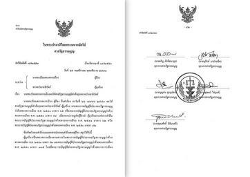 | Keywords: Registrar v Democrat (2010) Decision 004.jpg en <br>What <br> First page and last page of the Decision of the Constitutional Court of Thailand No 15/2553 dated November 29 2010 in the case Political Party Registrar v Democrat Party in which the Political Party Registrar entered a motion for a judicial order dissolving the Democrat Party and the Court dismissed the motion On the last page the judges in the Chamber signed and the seal of the court is affixed <br>Where Constitutional Court 2010 9 December Decision of the Constitutional Court No 15/2553 Online Available <http //www constitutionalcourt or th/index php option com_docman task cat_view gid 167 Itemid 94 lang th link> Accessed 9 DecemberD 2010 th <br>อะไร หน้าต้น และหน้าท้าย ของ คำวินิจฉัยศาลรัฐธรรมนูญ ที่ ๑๕/๒๕๕๓ ลงวันที่ ๒๙ พฤศจิกายน ๒๕๕๓ ใน คดีระหว่างนายทะ บียนพรรคการ มือง กับพรรคประชาธิปัตย์ ซึ่งนายทะ บียนพรรคการ มืองมีคำร้องขอให้ศาลสั่งยุบพรรคประชาธิปัตย์ และศาลยกคำร้อง ในหน้าท้าย บรรดาตุลาการที่ ป็นองค์คณะ ลงลายมือชื่อ และประทับตราศาล <br>ที่ไหน ศาลรัฐธรรมนูญ ๒๕๕๓ ๙ ธันวาคม คำวินิจฉัยศาลรัฐธรรมนูญ ที่ ๑๕/๒๕๕๓ ออนไลน์ ข้าถึงได้จาก <http //www constitutionalcourt or th/index php option com_docman task cat_view gid 167 Itemid 94 lang th ลิงก์> ข้าถึง มื่อ ๙ ธันวาคม ๒๕๕๓ 2010-12-09 own Clumsily PD-TH-exempt Registrar v Democrat 2010 |