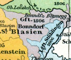 | Keywords: Reichsherrschaft Bonndorf 1806 V2.PNG de Karte der Reichsherrschaft Bonndorf um 1806 F W Putzgers Historischer Schul-Atlas Bielefeld und Leipzig 1914 S 34 Baden zieglhar via Scann aus dem Atlas 1914 PD-old Old maps of Baden-Württemberg Kloster St Blasien |