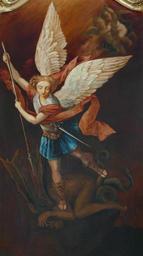 | Keywords: Reichshoffen StMichel 39.JPG Alsace Bas-Rhin Reichshoffen Eglise Saint-Michel Autel secondaire Saint-Michel 1774 own 2015 Ralph Hammann cc-by-sa-4 0 Taken with Panasonic Lumix DMC-FZ1000 Photographs of Reichshoffen by Ralph Hammann Artwork / Œuvre d'art / Kunstwerk oil canvas Eglise Saint-Michel Reichshoffen Autel secondaire PM67000649 IM67007616 classé object history Les tableaux furent peints par Jean Schlau de Strasbourg ; la polychromie fut réalisée par Koch de Haguenau ; tableaux restaurés par P Rudloff en 1920 c'est-à-dire repeints à 90 pour cent ; seuls les putti seraient encore d'origine other versions Ralph Hammann PD-old accession number Altar of Saint Michael of Église Saint-Michel Reichshoffen Objets monuments historiques in Bas-Rhin church paintings 18th-century church paintings in Alsace 20th-century church paintings in Alsace Paintings of Saint Michael Neoclassical paintings in Alsace 1774 works in Alsace 1920 works in Alsace |