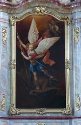| Keywords: Reichshoffen StMichel 40.JPG Alsace Bas-Rhin Reichshoffen Eglise Saint-Michel Autel secondaire Saint-Michel 1774 own 2012 Ralph Hammann Cc-zero Artwork / Œuvre d'art / Kunstwerk oil canvas Eglise Saint-Michel Reichshoffen Autel secondaire PM67000649 IM67007616 classé object history Les tableaux furent peints par Jean Schlau de Strasbourg ; la polychromie fut réalisée par Koch de Haguenau ; tableaux restaurés par P Rudloff en 1920 c'est-à-dire repeints à 90 pour cent ; seuls les putti seraient encore d'origine other versions Ralph Hammann PD-old accession number Photographs of Reichshoffen by Ralph Hammann Taken with Canon PowerShot SX20 IS Altar of Saint Michael of Église Saint-Michel Reichshoffen Objets monuments historiques in Bas-Rhin church paintings 18th-century church paintings in Alsace 20th-century church paintings in Alsace Paintings of Saint Michael Neoclassical paintings in Alsace 1774 works in Alsace 1920 works in Alsace |