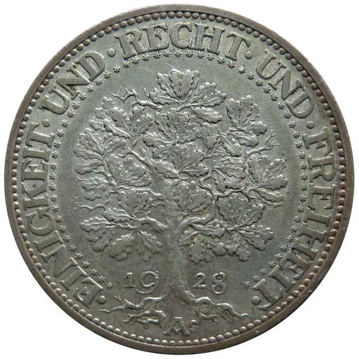 Keywords: reichsmark oak tree weimar republic coin money numismatics currency commemorative cash financial
