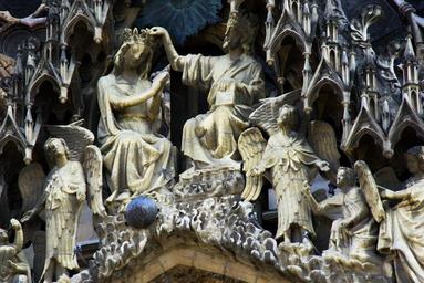 Keywords: reims cathedral sculptures statues mary religion gothic saints porch christ