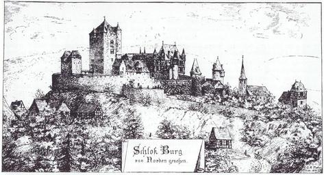 | Keywords: Rekonstruktionszeichnung Schloss Burg, Fischer.jpg Rekonstruktionszeichnung für Schloss Burg Dirk Soechting Hartmut Gaul žFür Kaiser Volk und VaterlandË® Der spätromantische Wiederaufbau von Schloß Burg seit 1887 Köln Rheinland-Verlag 1987 ISBN 3-7927-0994-5 p 29 c 1891 Gerhard August Fischer PD-old-70 Schloss Burg in art Gerhard August Fischer |