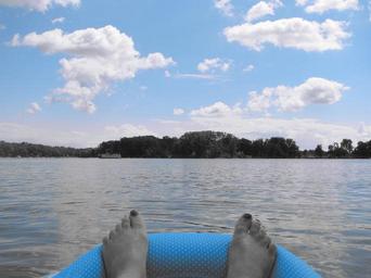 Keywords: relax float lake feet sky clouds peace peaceful stress summer