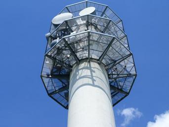 Keywords: relay television retransmission building technical radio tower perched superstructure antennas parable concrete steel