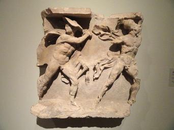 | Keywords: Relief of Hermes and Ares, 300-200 BC, Greek, Tarentum, limestone - Cleveland Museum of Art - DSC08221.JPG en Relief of Hermes and Ares 300-200 BC Greek Tarentum limestone Exhibit in the Cleveland Museum of Art Cleveland Ohio USA Photography was permitted in the museum without restriction This artwork is old enough so that it is in the public domain Daderot 2012-09-07 12 31 17 Daderot cc0 Ancient Greek art in the Cleveland Museum of Art Ancient Greek art from Taranto 4th-century BC art in the United States Reliefs of Hermes Ares Ancient Greek reliefs in the United States Nude males in sculpture in the United States |