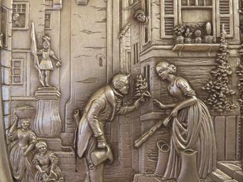Keywords: relief metal wall plate flowers hand over valentine's day iron cast iron city scenery man woman silver