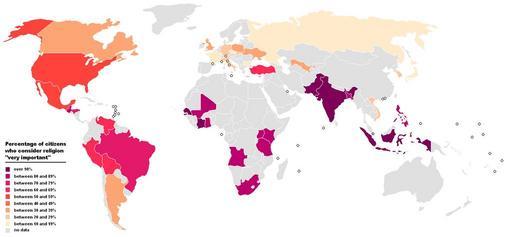 | Keywords: Religion importance.PNG Created by Jersyko from blank world map Data taken from a 2002 Pew Research Center http //pewglobal org/reports/display php ReportID 167 report on world attitudes on the importance of religion Religion maps of the world Maps needing South Sudan political boundaries 2006-08-01 own assumed Jersyko |