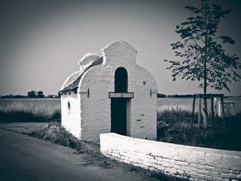 Keywords: religion pray christian church faith chapel wayside chapel patron saint nature black white away