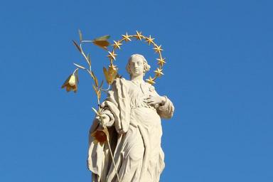 Keywords: religious statue saint john of nepomuk liberty square blue sky timisoara