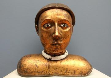 | Keywords: Reliquary bust of a male saint, France, perhaps Burgundy, 1400-1450, enamelled and gilt copper - Bode-Museum - DSC03222.JPG en Exhibit in the Bode-Museum Berlin Germany This work is in the public domain because the artist died more than 100 years ago Photography was permitted in the museum without restriction 2014-11-12 11 07 44 own Daderot other versions PD-old-100 cc-zero Gothic sculpture in the Bode-Museum Uploaded with UploadWizard | ||||