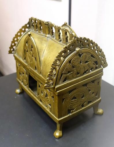| Keywords: Reliquary, Lower Saxony, 1150-1200, yellow brass - Museum Schnütgen - Cologne, Germany - DSC00174.jpg en Exhibit in the Museum Schnütgen - Cologne Germany 2015-11-29 08 54 18 own Daderot other versions PD-old-100 cc-zero Metalwork in Museum Schnütgen Reliquary caskets |