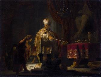 View Original:rembrandt_daniel_cyrus_before_idol_bel_1633.jpg (2700x2063)