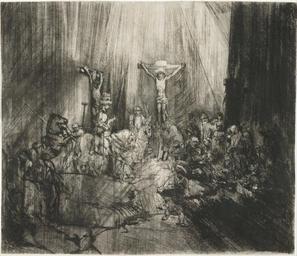 | Keywords: Rembrandt Harmensz. van Rijn, Dutch (active Leiden and Amsterdam) - Christ Crucified between Two Thieves (The Three Crosses) - Google Art Project.jpg Artwork Creator Rembrandt 1653 drypoint burin LangSwitch state staat stan iv/v cm 38 2 45 1 Institution Philadelphia Museum of Art Not on view http //www philamuseum org/collections/permanent/275754 html Philadelphia Museum of Art Online Catalog LangSwitch als as comme als Christ Crucified between Two Thieves The Three Crosses 1653-1655 object history ProvenanceEvent 2003 acquisition LangSwitch das the le het Philadelphia Museum of Art Philadelphia exhibition history credit line Acquired with the Muriel and Philip Berman Gift by exchange and with the gifts by exchange of Lisa Norris Elkins Bryant W Langston Samuel S White 3rd and Vera White William Goldman Herbert T Church R Edward Ross Jay Cooke Carl Zigrosser John Sheldon the Charles M Lea Collection the William S Pilling Collection the Louis E Stern Collection the Print Club of Philadelphia Permanent Collection and with funds contributed by exchange from John Howard McFadden Jr Thomas Skelton Harrison and the Philip and A S W Rosenbach Foundation and the Edgar Viguers Seeler Fund accession number 2003-188-1 YQExcWVFYBeGUg B078s5 Rembrandt jpg Version at the British Museum London Rembrandt 215 jpg Version at the Museum Boijmans Van Beuningen Rotterdam Rembrandt Three Crosses jpg Version at the National Museum in Warsaw PD-old-100-1923 1669 Google Art Project works in Philadelphia Museum of Art Google Art Project works by Rembrandt Prints in the Philadelphia Museum of Art Rembrandt The Three Crosses - State 4/5 |
