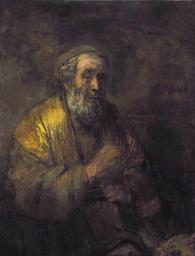 | Keywords: Rembrandt Harmensz. van Rijn 061.jpg Artwork Q11710021 Creator Rembrandt One of two surviving painting of a series of seven by Rembrandt Guercino Matia Preti Salvator Rosa and Giacinto Brandi Parts were removed from all four sides as a result of fire damage following an earthquake that struck Antonio Ruffo's palace in Messina in 1783 Only two fingers remained of the pupils that were present in the complete painting 1663 Ucfirst Oil on canvas cm 107 82 Institution Mauritshuis accession number 584 object history commission Don Antonio Ruffo principe della Scaletta 1610/1611-1678 Messina ProvenanceEvent 1678 inheritance Alfonsina Gotho -1689 Messina inheritance Don Placido Ruffo principe della Scaletta 1646-1710 Messina ~ 1680 -1739 Messina inheritance Don Calogero Ruffo principe della Scaletta Messina ProvenanceEvent 1750 inheritance Don Giovanni Ruffo e la Rocca principe della Scaletta Messina ProvenanceEvent 1756 inheritance Antonio Ruffo -1778 Messina by 1783 Giovanni Ruffo Messina ProvenanceEvent 1810-02-17 anonymous sale Christie's London A schoolmaster with his pupil 117 £32 11s by 1824 Sir Abraham Hume 1749-1838 Ashridge Hertfordshire i18n/as Homer Dictating his poems by 1885 S T Smith art dealer London by 1894 T Humphrey Ward Son art dealer London ProvenanceEvent 1894 acquisition Abraham Bredius 1855-1946 The Hague - 1894 1946 loan LangSwitch el die the el au het Mauritshuis The Hague Abraham Bredius The Hague ProvenanceEvent 1946 bequest LangSwitch die the au het Mauritshuis The Hague Abraham Bredius The Hague credit line Rembrandt f 1663 signature and date top right la Anonymous homerus-584 LangSwitch Homer Homerus cm 107 82 Anonymous 2939 LangSwitch Homer Homerus cm 107 82 Anonymous http //www rembrandtdatabase org/Rembrandt/painting/2939/homer The Rembrandt Database i18n/as Homer cm 107 82 Anonymous 20186201 Homer Size cm 108 82 4 Mauritshuis museum catalog 29 LangSwitch Homer Homerus exhibition history De Rembrandt Tentoonstelling te Amsterdam 117 Bredius Rembrandt en het Mauritshuis 13 Liefde list en lijden 33 Een zomer met Rembrandt 2006 6 26 “ 2006 9 24 Koninklijk Kabinet van Schilderijen Mauritshuis The Hague Meesters uit het Mauritshuis Zes eeuwen kunst onder een dak 2012 4 28 “ 2014 6 30 Gemeentemuseum Den Haag The Hague Unknown Rembrandt Homer Dictating his Verses jpg Version from www geheugenvannederland nl Rembrandt Harmensz van Rijn 061 black and white jpg Version in black and white from mus cat c 1900 place of creation Amsterdam PD-old-100 ImageNote 1 4 316 303 98 2024 2673 2 LangSwitch Traces of signature and date Resten van signatuur en datum andt f 1663 ImageNoteEnd 1 Homer on paintings Baroque portraits of men Paintings by Rembrandt in the Mauritshuis 1663 1663 paintings History paintings by Rembrandt 1663 Homer Antonio Ruffo |