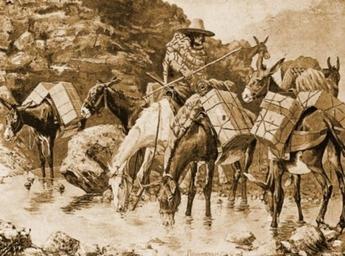 View Original:remington_mule_train_crossing_sierras_1888.jpg (500x371)
