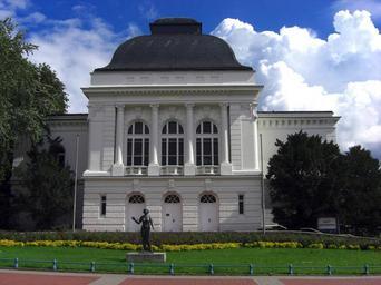 Keywords: rendsburg germany sky clouds statue sculpture theatre building landmark historical grass trees architecture outside