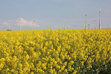 Keywords: renewable energy green energy oilseed rape field of rapeseeds yellow wind power pinwheel wind energy wind turbine