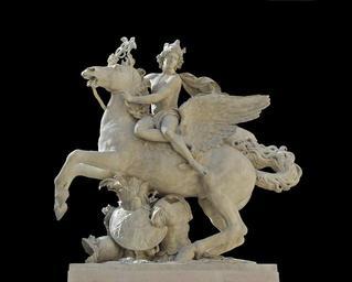 | Keywords: Renommée du Roi Mercure Pégase Coysevox Louvre MR1822 noir.jpg 48 862047 2 335784 Artwork Creator Antoine Coysevox fr Mercure chevauchant Pégase 1701-1702 2012-04-01 for photograph Carrara marble H 3 15 m 124 in W 2 91 m 114 ½ in D 1 28 m 50 ¼ in Museum Louvre fr Aile Richelieu rez de chaussée haut Cour Marly Département des Sculptures Richelieu wing upper ground floor Cour Marly Department of Sculptures http //cartelfr louvre fr/cartelfr/visite srv car_not_frame idNotice 16904 langue fr Louvre Museum Internet Databank object history fr Commandé en 1698 par Jules Hardouin-Mansart surintendant des Bâtiments du Roi pour la décoration du parc de Marly transféré en 1719 à l'entrée du jardin des Tuileries en Commissioned in 1698 by Jules Hardouin-Mansart Surintendant des Bâtiments du Roi for the decoration of the park of Marly transfered in 1719 to the entrance to the Tuileries Gardens exhibition history credit line fr Remplacé par une copie moulage en 1986 Restauré en 2004-2006 grâce au mécénat du Pari Mutuel Urbain en Replaced by cast copy in 1986 Restored in 2004-2006 with help of Pari Mutuel Urbain accession number MR 1822 own Jebulon <gallery>File Mercury riding Pegasus Coysevox Louvre MR1822 jpg by User Jastrow 2007</gallery> cc-zero Uploaded with UploadWizard Mercury Riding Pegasus Coysevox Objects with black background Quality images by Jebulon Quality images of the Louvre QualityImage |