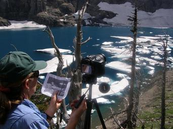 | Keywords: nps usgs glacier national park glaciernationalpark national park nationalpark national park service nationalparkservice global warming globalwarming climate change climatechange climate glacier glaciers repeat photography repeatphotography science research outdoor Repeat glacier photography is used to monitor changes in the appearance of glaciers over time. Scientists use historic photos of glaciers to locate the exact spot and time of year where the photo was taken. They then take a new photo which can be directly compared to the historic one to identify changes. USGS Photo. Repeat glacier photography is used to monitor changes in the appearance of glaciers over time. Scientists use historic photos of glaciers to locate the exact spot and time of year where the photo was taken. They then take a new photo which can be directly compared to the historic one to identify changes. USGS Photo. |