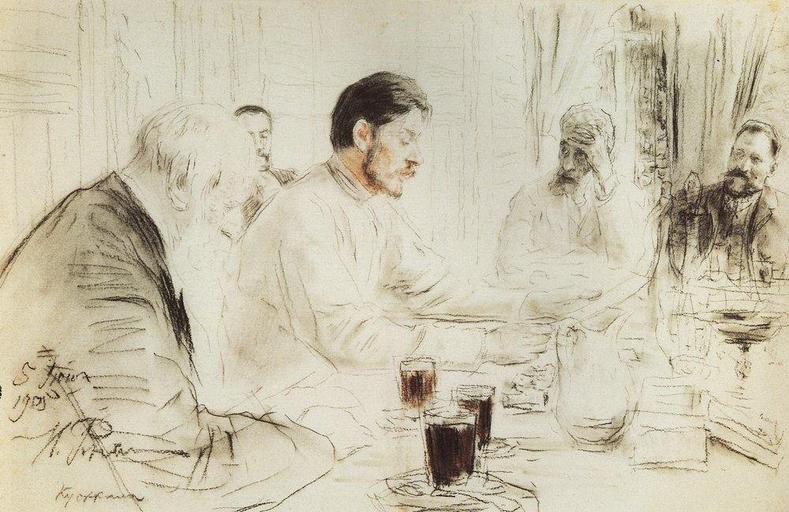 View Original:repin_maxim_gorky_reading_penates_his_dram_children_sun_1905.jpg (1000x649)