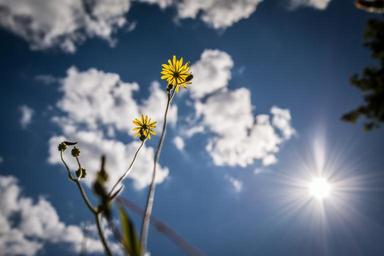Keywords: reported hawksbeard blossom bloom yellow bloom macro basket flower greenhouse flower sky cloud sun back light hawksbeard