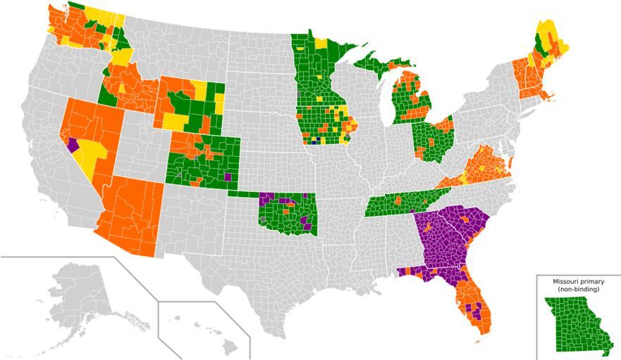 | Keywords: Republican Party presidential primaries results by county, 2012.svg ff6600 Mitt Romney 800080 Newt Gingrich 008000 Rick Santorum ffd700 Ron Paul 000080 Rick Perry 686868 Tied between two candidates own based on File USA Counties svg PD Htonl 2012-02-01 2012 US presidential election maps 2012 U S presidential election maps Republican primary county subdivisions 2012 U S presidential election maps incomplete Cc-zero | ||||