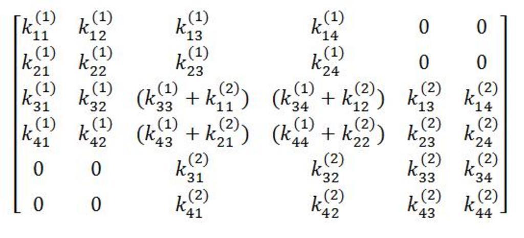 | Keywords: Rersulting global k 2.jpg Use TeX \begin bmatrix k_ 11 1 k_ 12 1 k_ 13 1 k_ 14 1 0 0\\1ex k_ 21 1 k_ 22 1 k_ 23 1 k_ 24 1 0 0\\1ex k_ 31 1 k_ 32 1 k_ 33 1 +k_ 11 2 k_ 34 1 +k_ 12 2 k_ 13 2 k_ 14 2 \\1ex k_ 41 1 k_ 42 1 k_ 43 1 +k_ 21 2 k_ 44 1 +k_ 22 2 k_ 23 2 k_ 24 2 \\1ex 0 0 k_ 31 2 k_ 32 2 k_ 33 2 k_ 34 2 \\1ex 0 0 k_ 41 2 k_ 42 2 k_ 43 2 k_ 44 2 \\ \end bmatrix en Resulting Global stiffness matrix K own Eml4500 f08 jamama adam Mathematical formulas | ||||