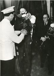 | Keywords: reservepoliti vårslipp 2012 vårslipp2012 vårslipp andre verdenskrig andreverdenskrig norske flyktninger i sverige under krigen norskeflyktningerisverigeunderkrigen people 1200 nordmenn fra reservepolitiforlegningen på Øreryd var onsdag 6. desember 1944 gjester i Göteborg, hvor de fikk en hjertelig mottagelse av vertskapet –Göteborgs-Posten ivrig assistert av Karl Gerhard og Gøteborgs politiorganisasjoner. Blant annet overvar guttene en Karl Gerhard-forestilling i Cirkus. På bildet sees Karl Gerhard motta blomster av major Bjørnson. Til høyre velferdsoffiser Bjørnar. RA/PA-1209/Uc/68/4/S 5423 1200 nordmenn fra reservepolitiforlegningen på Øreryd var onsdag 6. desember 1944 gjester i Göteborg, hvor de fikk en hjertelig mottagelse av vertskapet –Göteborgs-Posten ivrig assistert av Karl Gerhard og Gøteborgs politiorganisasjoner. Blant annet overvar guttene en Karl Gerhard-forestilling i Cirkus. På bildet sees Karl Gerhard motta blomster av major Bjørnson. Til høyre velferdsoffiser Bjørnar. RA/PA-1209/Uc/68/4/S 5423 |