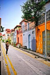 Keywords: residential person buildings colorful facades area town city street urban construction design house taking photos
