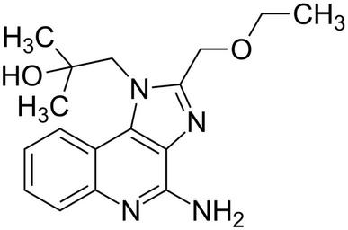 | Keywords: Resiquimod 200.svg validSVG Structure of 1- 4-amino-2- ethoxymethyl -1H-imidazo4 5-cquinolin-1-yl -2-methylpropan-2-ol Own 2014-04-09 Emeldir <span class signature-talk >talk</span> Chemical structure verified https //upload wikimedia org/wikipedia/commons/8/80/Resiquimod_200 svg 1S/C17H22N4O2/c1-4-23-9-13-20-14-15 21 13 10-17 2 3 22 11-7-5-6-8-12 11 19-16 14 18/h5-8 22H 4 9-10H2 1-3H3 H2 18 19 BXNMTOQRYBFHNZ-UHFFFAOYSA-N 144875-48-9 Synonyms <small>1- 4-Amino-2-ethoxymethyl-imidazo4 5-cquinolin-1-yl -2-methyl-propan-2-ol 4-Amino-2- ethoxymethyl -a a-dimethyl-1H-imidazo4 5-cquinoline-1-ethanol R 848 R-848 Resiquimod S 28463 S-28463 VML 600 VML-600</small> PD-chem Resiquimod |