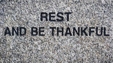 Keywords: rest thankful peace thanks quiet pause stop wait resting waiting rest and be thankful weary relief stone memorial monument seat bench inscription engraving engraved