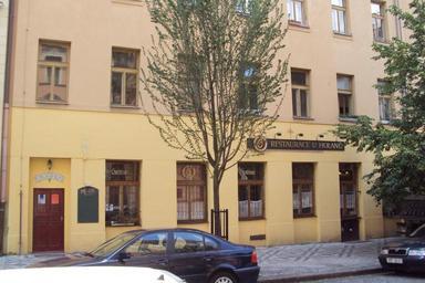 Keywords: Restaurace u Holanů.jpg cs Levé dveře jsou od vinárny Vínečko vpravo rohová restaurace u Holanů má zde neviděný hlavní vchod z Londýnské ulice own Zákupák 2012-06-19 Záhřebská Prague Buildings in Vinohrady Prague Restaurace U Holanů