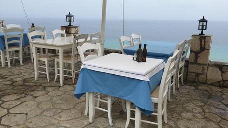 Keywords: restaurant greece dinner table tablecloth sea view after work romantic