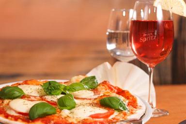 Keywords: restaurant italians pizza eat aperol spritz basil glass taste smell spice salad mood