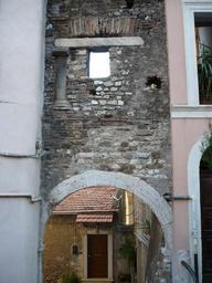 Keywords: Resti inglobati.JPG Ancient columns in a wall Tivoli own summer 2007 Zanner Historic centre of Tivoli Ancient Roman columns in Tivoli Ancient Roman ruins in Tivoli Ancient Roman composite bases Spolia in Italy