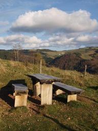 Keywords: resting place sky clouds blue view foresight vision distant view trail hike nature table bank