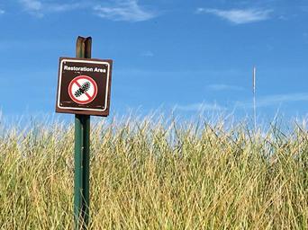 | Keywords: Restoration Area Sign.jpg en A sign warning beachgoers against trespassing across a protected plant wildlife restoration area on a Sand Beach dune adjacent to the Atlantic Ocean in Acadia National Park 2016-10-08 10 17 47 own MarkBuckawicki other versions 44 329303 -68 182847 heading 351 5974025974026 cc-zero Dunes Acadia National Park Plantlife Nature Reserves |