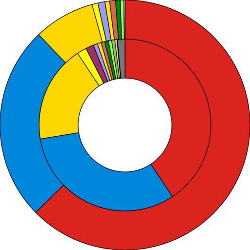 | Keywords: Results of the UK General Election, 2001.svg United Kingdom general election 2001 displayed in a ring chart The inside ring shows the proportion of the vote each party got The outside ring shows the number of seats each party got Standard party colors from the English Wikipedia are used Own work by uploader source code H2g2bob 2009-08-18 Election apportionment diagrams of the United Kingdom | ||||