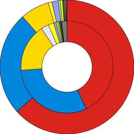 | Keywords: Results of the UK General Election, 1997.svg United Kingdom general election 1997 displayed in a ring chart The inside ring shows the proportion of the vote each party got The outside ring shows the number of seats each party got Standard party colors from the English Wikipedia are used Own work by uploader source code H2g2bob 2009-08-18 Election apportionment diagrams of the United Kingdom | ||||